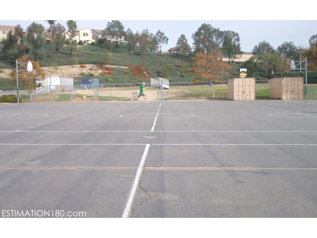 About how long will it take to run across the court?
