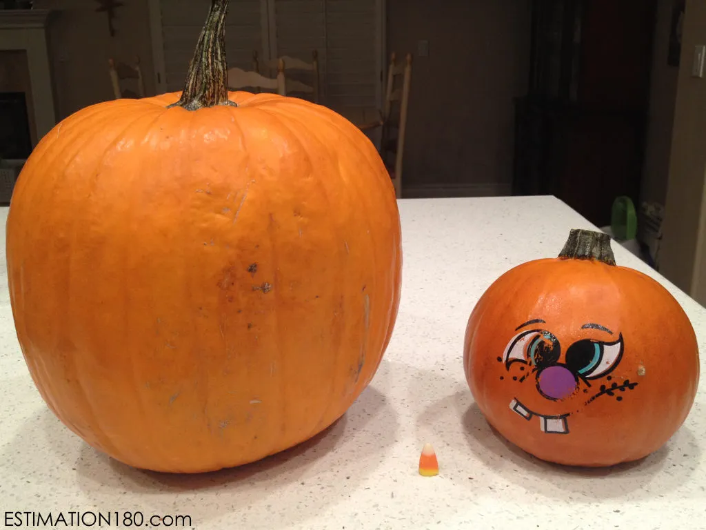 About how much does the larger pumpkin weigh?